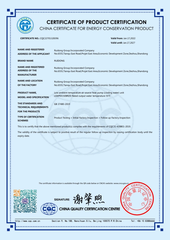 Unidad bomba de calor aire-agua para baja temperatura ambiente (agua de enfriamiento)