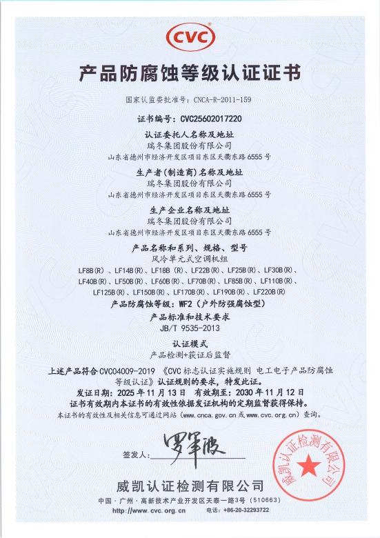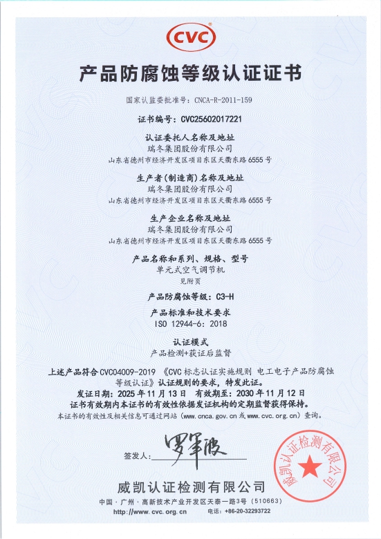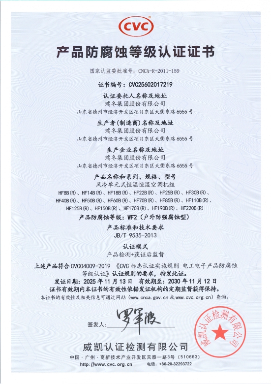 Certificación de resistencia a la corrosión del producto